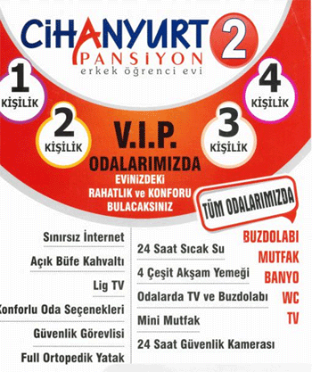 Cihan Yurt Pansiyon hizmetleri kurulduğu tarihten bu yana siz değerli velilerimizin ve değerli öğrencilerimizin huzurlu, güvenli, temiz ve sağlıklı bir ortamda konaklama hizmetini sağlamak ve eğitimde üst düzey başarıyı elde etmeyi amaç edinmiştir.